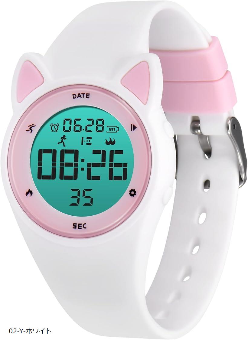 子供 腕時計 活動量計 キッズ デジタル腕時計 男の子 女の子 防水 充電式 スポーツウォッチ 歩数計 距離 アラーム ストップウォッチ 日付曜日表示 (02-Y-ホワイト)で、