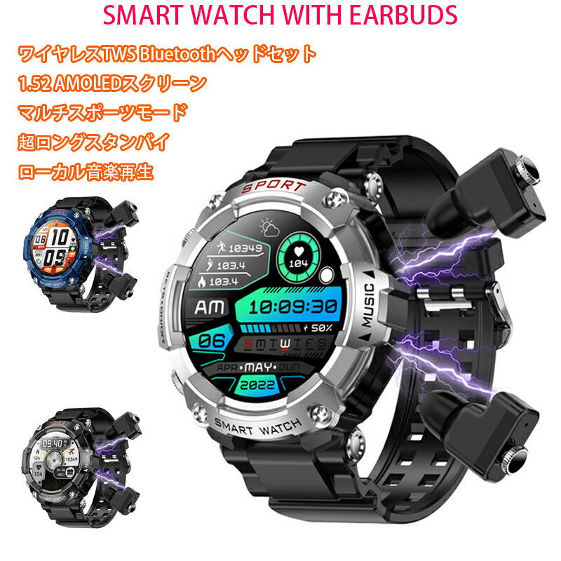 日本製センサー スマートウォッチ TWSイヤホン スマートウォッチ通話機能付,チタン合金シェル腕時計,HIFI 9D音質イヤホン,録音機能,万歩計, 両耳イヤホン,防塵防水,軍用規格耐寒耐熱,活動量計,DIY文字盤,長時間使用可能,着信電話,Line通知,iphone&アンドロイド対応,贈り物で、