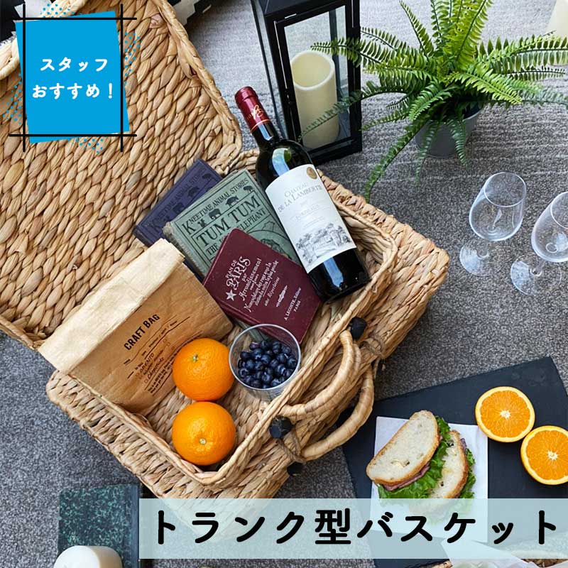 送料無料 収納 インテリア バスケット トランク型 かご トランク かごバッグ ピクニックバスケット トランクバスケット 収納ボックス ハンドメイド ウォーターヒヤシンス ナチュラル おしゃれ かわいい ランチバスケット アウトドア ピクニック キャンプ マルシェ